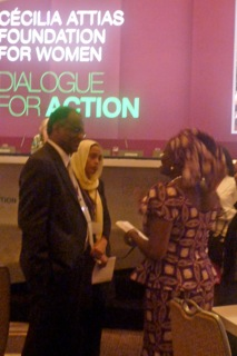 Gathering for Dialogue for Action was truly a blue-ribbon gathering. Mrs. Zanele Mbeki, the former first lady of South Africa and founder of the Women's Development Bank, addressed the event, as did Sophie Delaunay, the executive director of Doctors Without Borders, and Mary Ellen Iskenderian, President and CEO of Women's World Banking. Also presenting were the presidents, CEOs, or executive directors of such NGOs as Muslim Women Resource Center, Pro Mujer, Partnership for New York City, International Women's Health Coalition, Congolese Women League for Election, Tostan, Her Rights Initiative, UNIFEM, SAATHI, Women Without Borders, and Women for Women International.